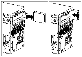 - Position the drive so that the connectors face the rear of the server and the diskette